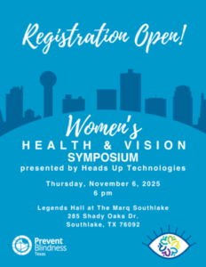 Prevent Blindness Texas’ Women’s Health & Vision Symposium presented by Heads Up Technologies is an evening focused on highlighting women and discussing how to empower women in their overall and eye health. Tickets on sale NOW for the Women’s Health & Vision Symposium on Thursday, November 6, 2025! This year’s theme is “Vision Through the Years”. Register today!